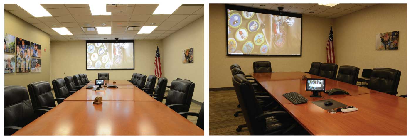 The Atlanta headquarters for Boy Scouts of America (BSA) contacted a local integration firm, DC Pro, to address their need for an easy-to-use presentation system with improved audio and video conferencing in their executive conference room. The goal was to improve presentation, audio quality, and video conferencing capabilities while making it easy for scout leaders, distinguished donors and guests, BSA staff, and volunteers to effortlessly use the room.