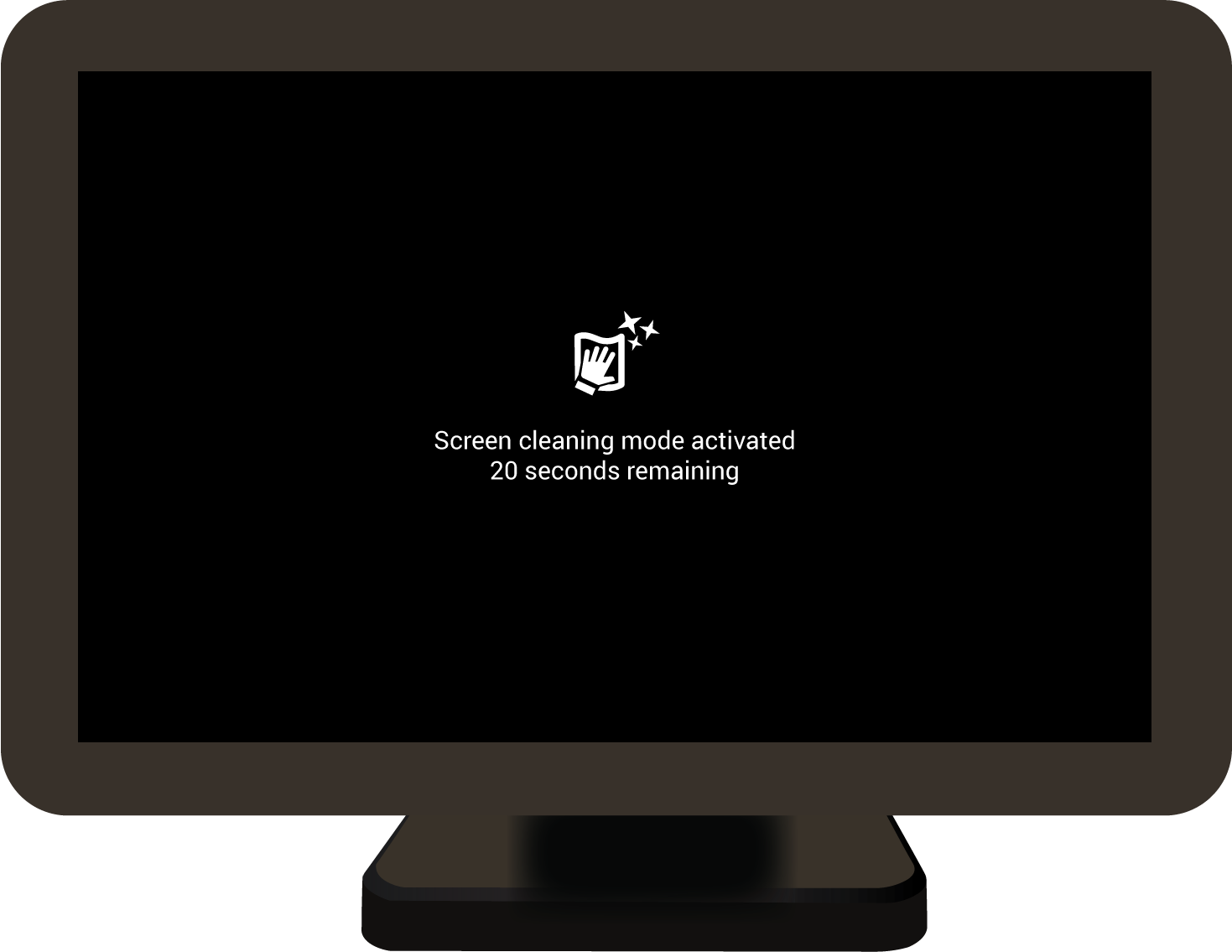 After 5 seconds have elapsed of pressing the clock, a screen cleaning graphic will appear with a dark background and a 20-second count-down timer showing the remaining time until the Mira Connect user interface is restored.