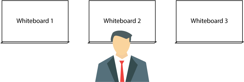 An instructor with multiple whiteboards to show at the same time.