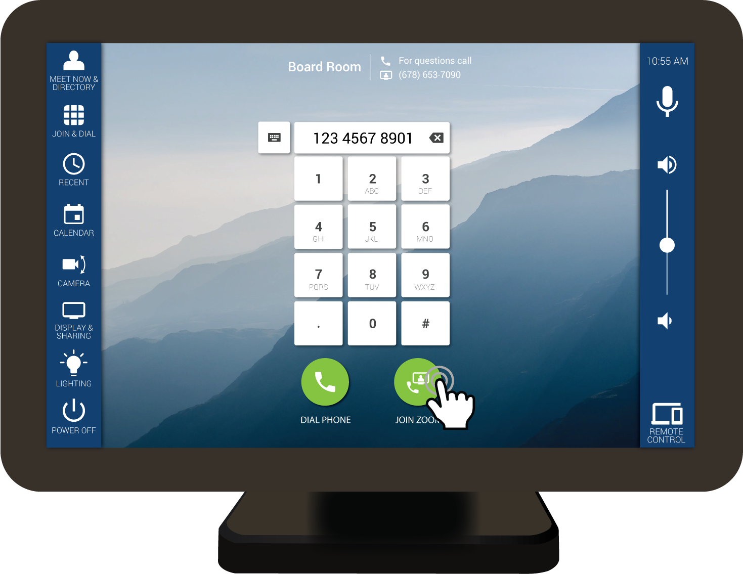 The Mira Connect touch panel control system can control multiple Zoom Rooms systems in a room and dial multiple Zoom Rooms into the same call as easily as dialing one call.