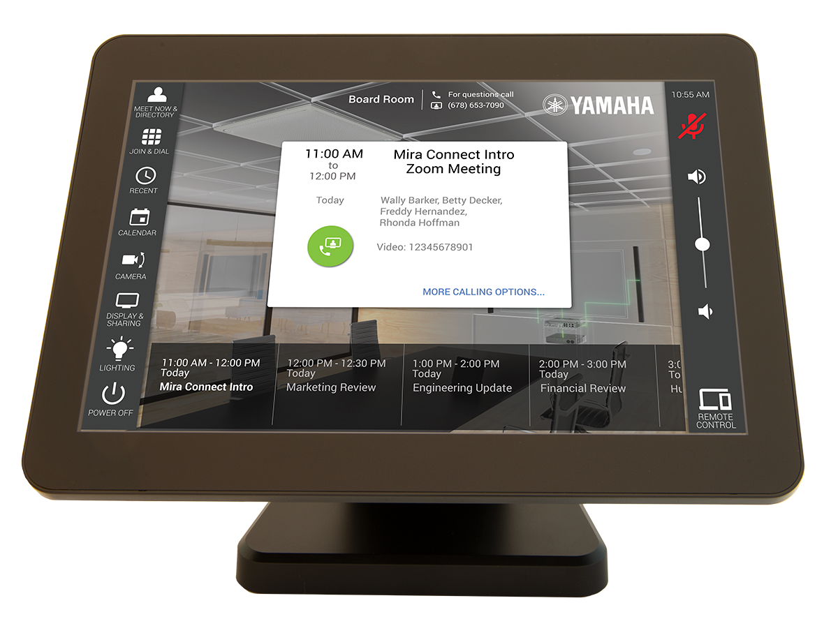 Mira Connect makes it easy to control microphone mutes, input and output mute and volume adjustments, and dialing telephone calls. With support for direct dial, contact directories, and one-touch dialing from calendar invitations, Mira Connect makes it simple to dial calls and join meetings.
