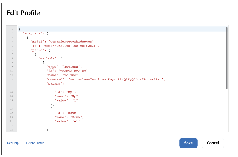 The automatically-generated Zoom Rooms Native Room Controls JSON file can be directly pasted into the Zoom.us web portal by clicking the Edit Profile option available on the Rooms Profile tab of your Zoom Rooms device.