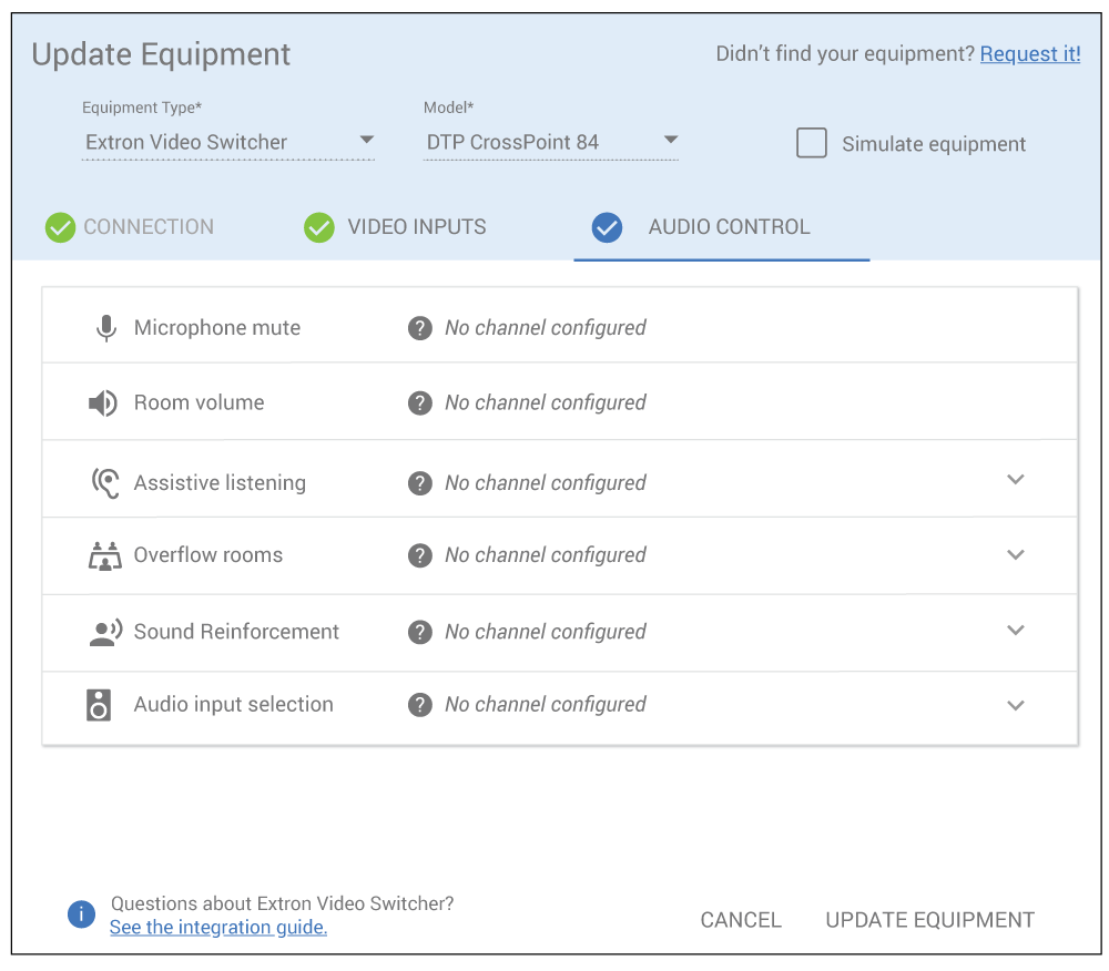 Now you can easily control stereo or mono audio associated with the inputs, crosspoints, and outputs. See the updated Extron integration guide for details.