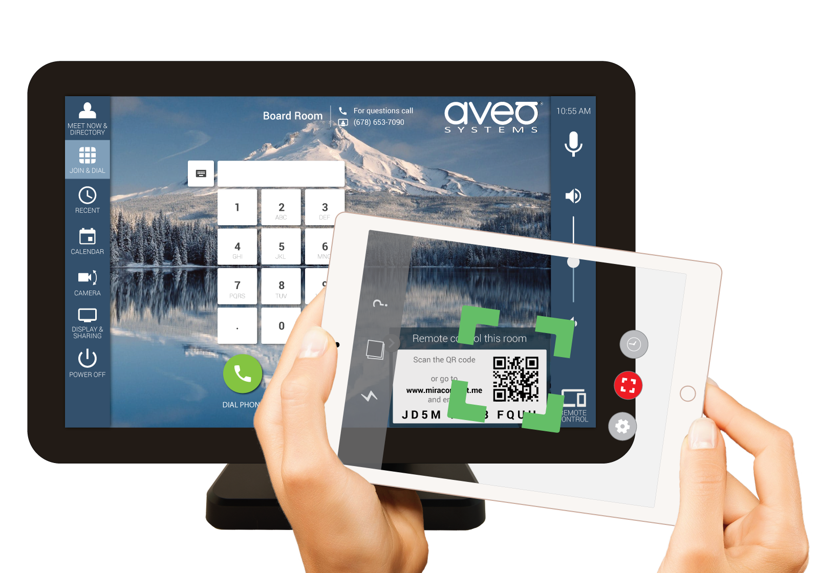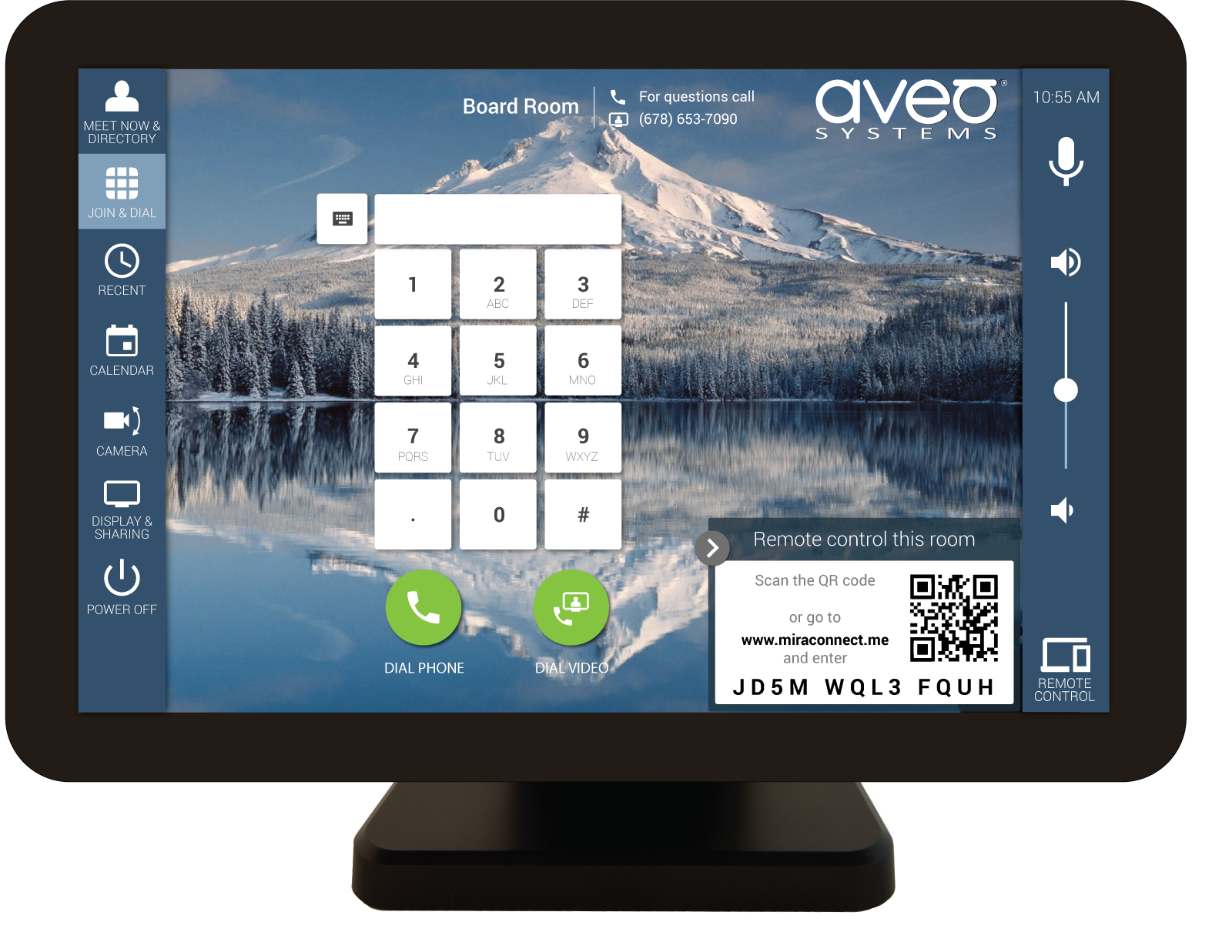 Aveo Systems’ Mira Connect™ is an easy-to-set-up, easy-to-use audio-visual touchscreen control system for conference rooms, huddle spaces, lecture halls, and other spaces. Our patented Mira Connect Me™ touchless AV control technology extends the Mira Connect control system by allowing you to quickly and securely control your audio-visual system from your own personal smartphone, tablet, and computer.