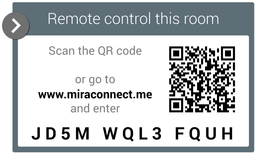 You can gain access to the Mira Connect user interface on your device in seconds without touching the Mira Connect panel in the room and without needing to install an application on your personal device.
