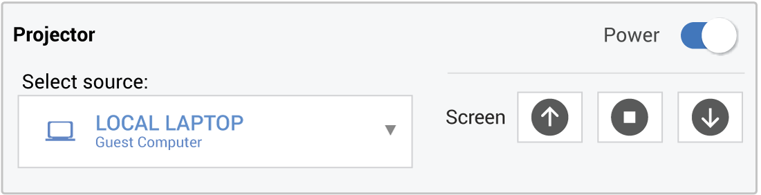 The user interface is created automatically and appears with the display or projector as shown in the following figure. You can control multiple screen and projector motors with one set of motion controls on Mira Connect.